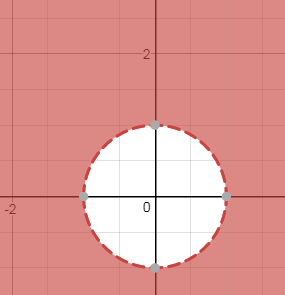 x^2+y^2-1 > 0 x^2+y^2 > 1 - внешность круга радиуса R=1 c центром в точке (0;0)
