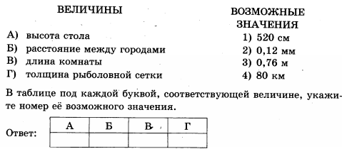 Установите соответствие между величинами и их возможными значениями: к каждому элементу первого столбца подберите соответствующий элемент из второго столбца.
