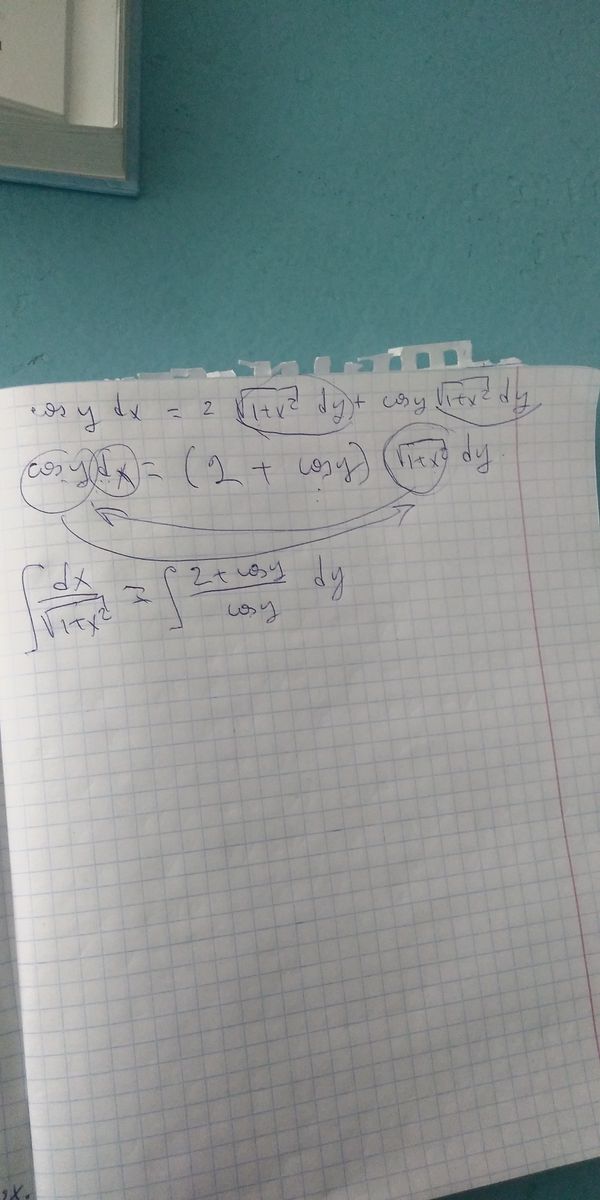 Первый интеграл табличный ln|x+sqrt(x^2+1)| Второй интеграл представляем как сумму двух: ∫2dy/cosy- табличный = 2 ln|tg((x/2)+(Pi/4))) ∫ dy=y