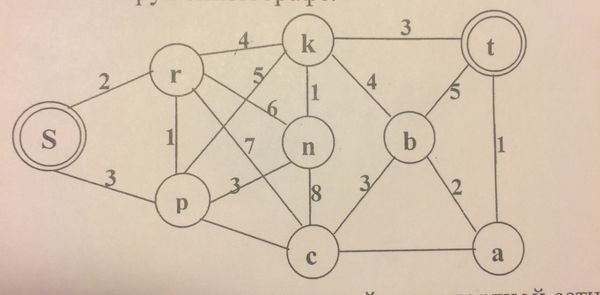 С помощью алгоритма Дейкстры найти путь минимального веса между вершинами s и t в нагружённом графе