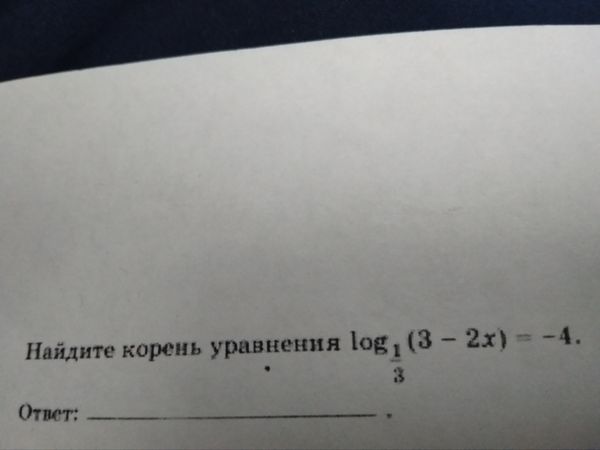 По определению логарифма 3-2х=(1/3)^(-4) ( ОДЗ можно не находить, так как 3-2х =81 > 0) 3-2x=81 -2x=81-3 -2x=78 x=-39