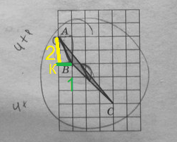 АB - гипотенуза прямоугольного треугольника АВК. АК=2 КВ=1 АВ=sqrt(2^2+1^2)=sqrt(5) средняя линия треугольника параллельна основанию и равна его половине. MN=(1/2)AB=sqrt(5)/2 О т в е т. sqrt(5)/2