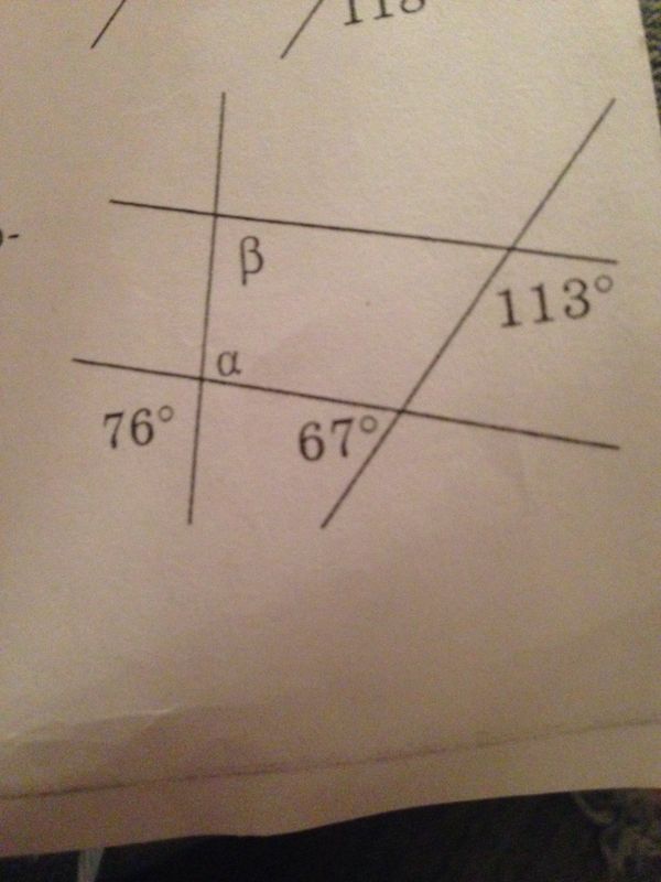 Прямые проведенные сверху вниз параллельны,(180-67=113*)- соответственные углы равны