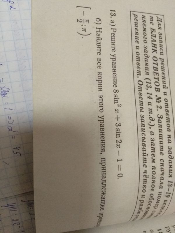 8sin^2x+3sin2x-1=0.Это однородное уравнение второй степени