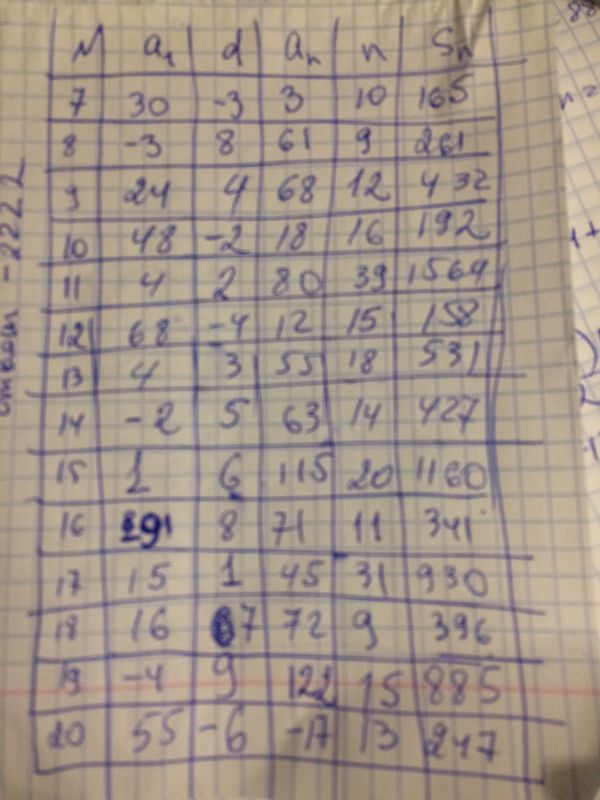 В заданиях 7-20 найдите неизвестные элементы арифметической прогрессии, заполнив соответствующие клетки таблицы.