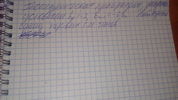 b2=-6b1= –6*(-2)=12 b3=-6b2= - 6 *12 = - 72 b4=-6b3= - 6 * (-72)= 452 b5=-6b4 = -6*452=-2712 S5=-2+12+(-72)+452+(-2712)=-2322