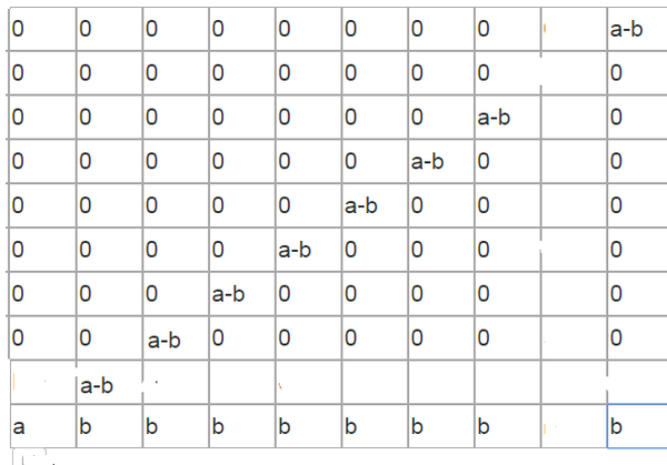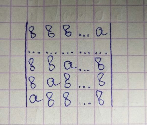 Умножаем последнюю строку на (-1) и складываем с первой, потом со второй, и т.д. Получим определитель cм. рис. 1 Затем умножаем последний столбец на (-1) и складываем с первым, предпоследний столбец на(-1) и складываем с первым и т.д. получим определитель рис.2