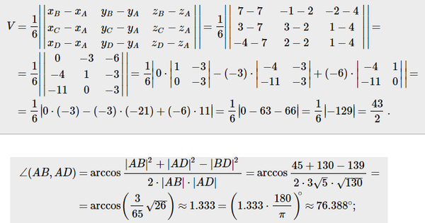 5. Дана пирамида с вершинами A1(7 ;2 ;4 ), A2(7; –1; –2), A3(3;3;1), A4(–4; 2; 1). Найти: а) угол между ребрами A1A2 и A1A4; б) объем пирамиды;