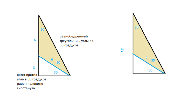 9/с=cos30^(o) c=18/sqrt(3)=6sqrt(3)