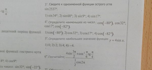 О т в е т. 1) cos(-82^(o)) - наименьшее число.