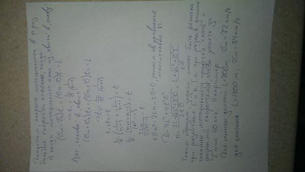 Колонна автомобилей движется со скоростью v = 54 км/ч. Мотоциклист, выехавший из «хвоста» колонны, приехал к ее «голове» и вернулся назад к «хвосту» за t = 2 мин 40 с. Какова длина колонны?