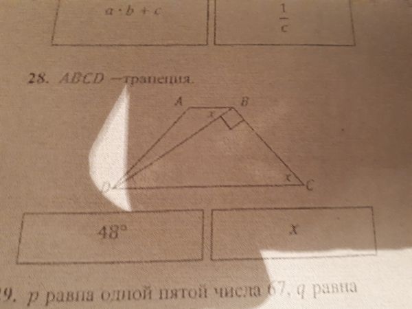 Cумма углов, прилежащих к одной стороне трапеции равна 180^(o) (x+90)+x=180 x=45