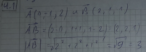 Найдите расстояние между точками A(0,-1,2) и B(2,1,1).