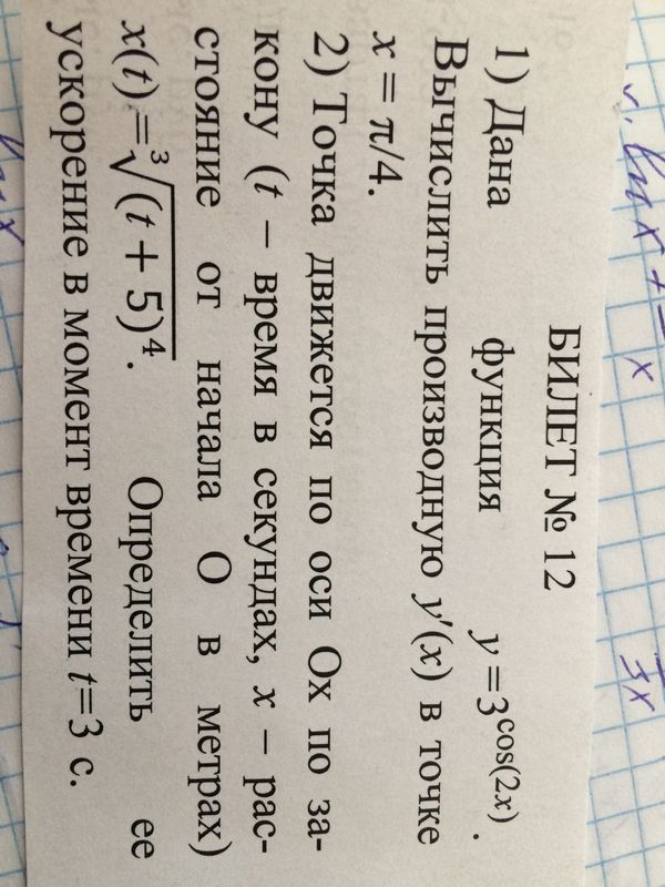 y`(Pi/4)=3^(cos(Pi/2))*ln3*(-sin(Pi/2))*2=