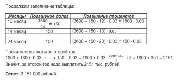 Известно, что в течение первого года кредитования нужно вернуть банку 2799 тыс. рублей. Какую сумму нужно вернуть банку в течение второго года кредитования?