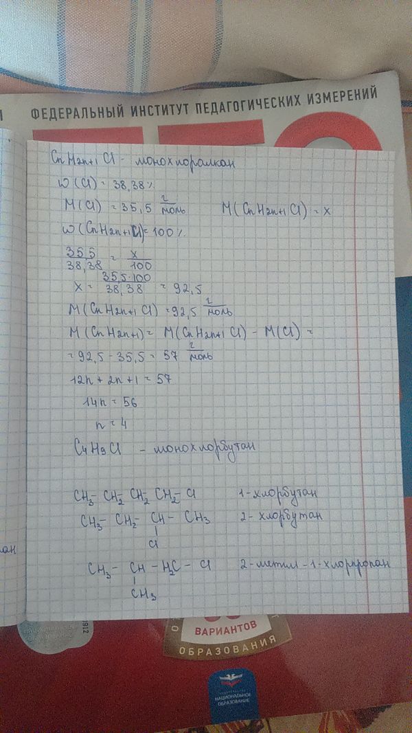 Установите молекулярную формулу монохлоралкана, содержащего 38,38 % хлора. Приведите графические формулы и названия всех соединений, отвечающих данной формуле.