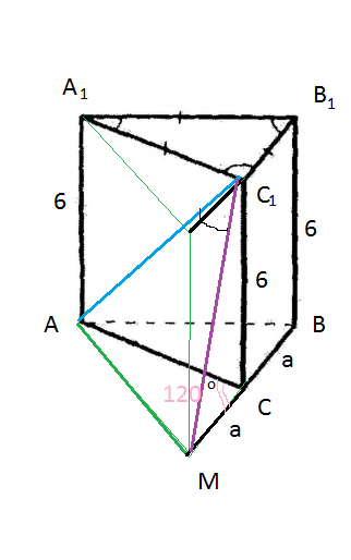 По теореме косинусов из треугольника АСМ, угол АСМ 120 °