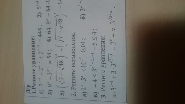 x*3^(x-1)-3^(x)=x*3^(sqrt(3-x))- 3*3^(sqrt(x-3)) 3^(x-1)*(x-3)=3^(sqrt(3-x))*(x-3) (x-3)*(3^(x-1)-3^(sqrt(3-x))=0 x-3=0 или 3^(x-1)=3^(sqrt(3-x)) x=3 или x-1 = sqrt(x-3) возводим в квадрат x^2-2x+1=x-3 x^2-3x+4=0 D < 0 нет корней О т в е т. х=3