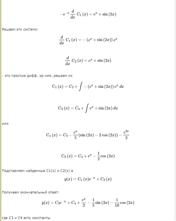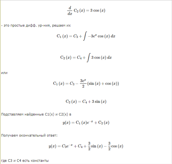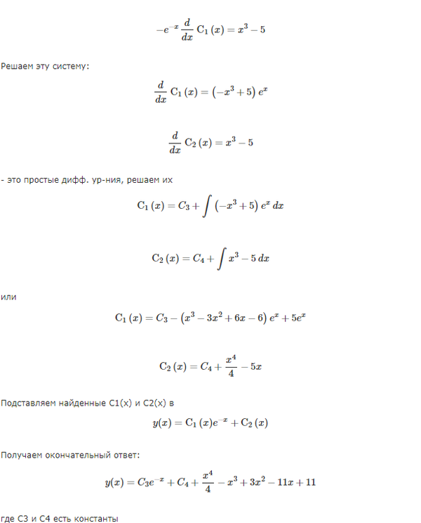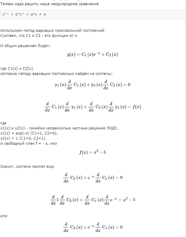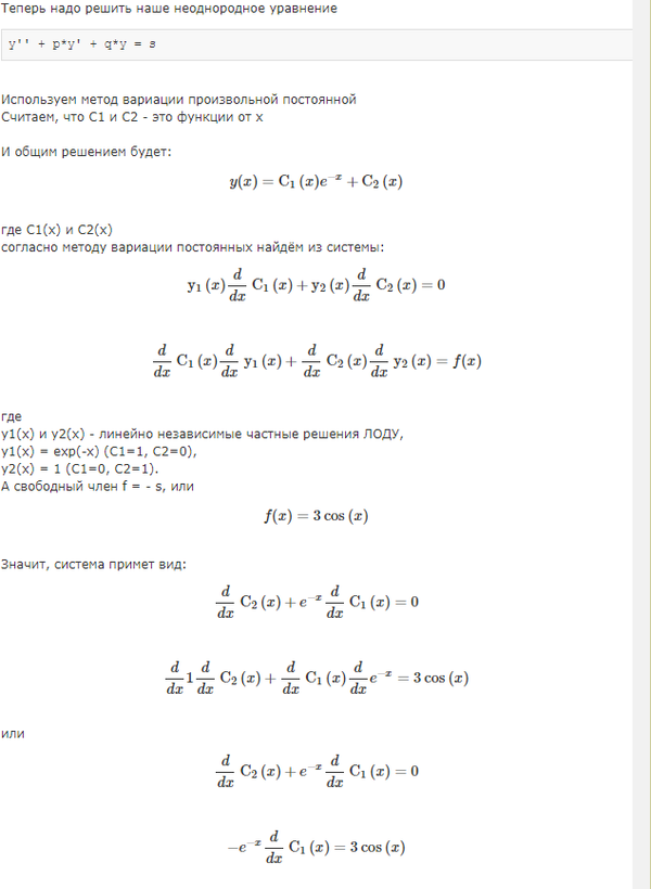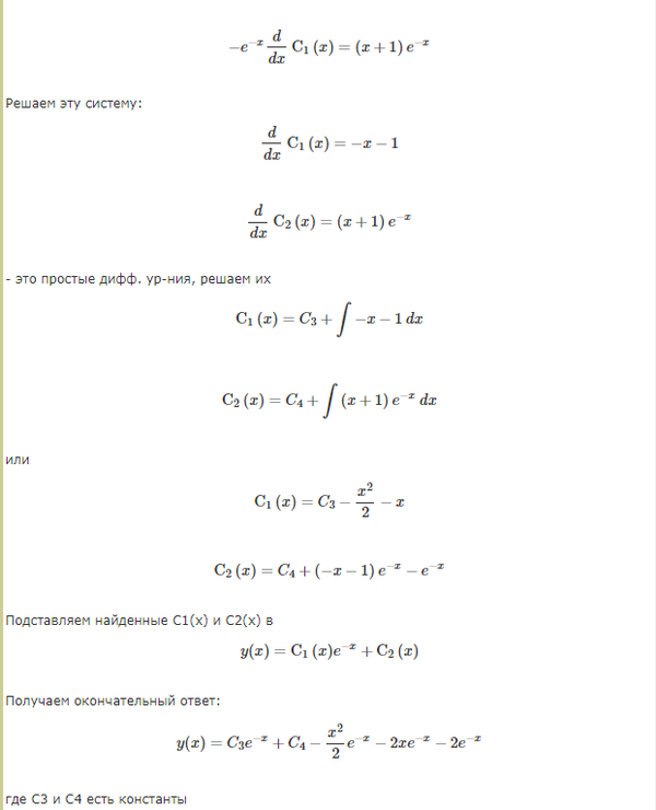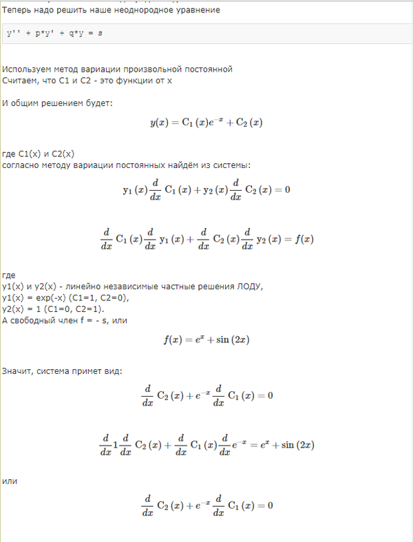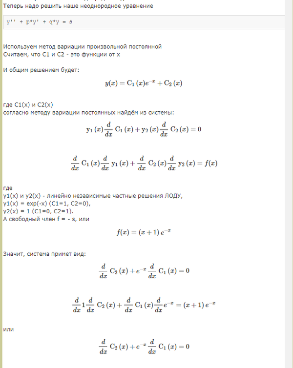 y_(однород)=C_(1)*e^(0) + C_(2)e^(-x) - общее решение однородного уравнения y``+y`=0
