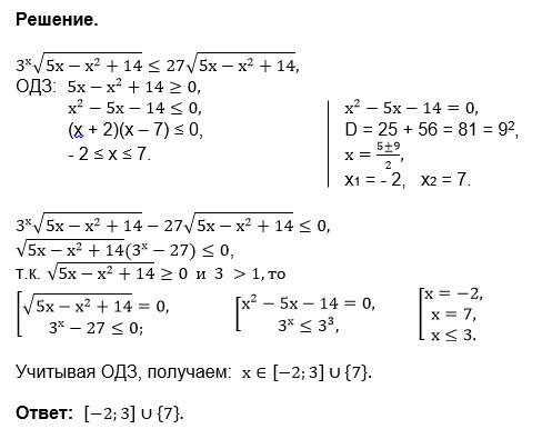 3^xsqrt(5x - x² + 14) ≤ 27sqrt(5x - x² + 14)