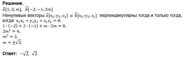 Даны векторы а(1;2;m) и b(-2;-1; 2;m).Найдите значения m,при которых векторы а и b -а перпендикулярны