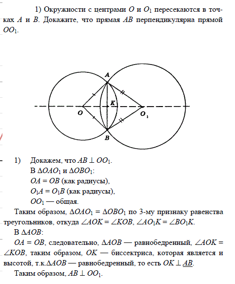 Две окружности с центрам в точках О1,О2 пересекаются в точках А и В.Докажите,что прямая О1О2 перпендикулярны прямой АВ.