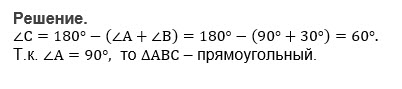 В треугольник АВС угол А равен 90 градусов. Угол В равен 30 градусов. Найти угол С и устоновите вид треугольника