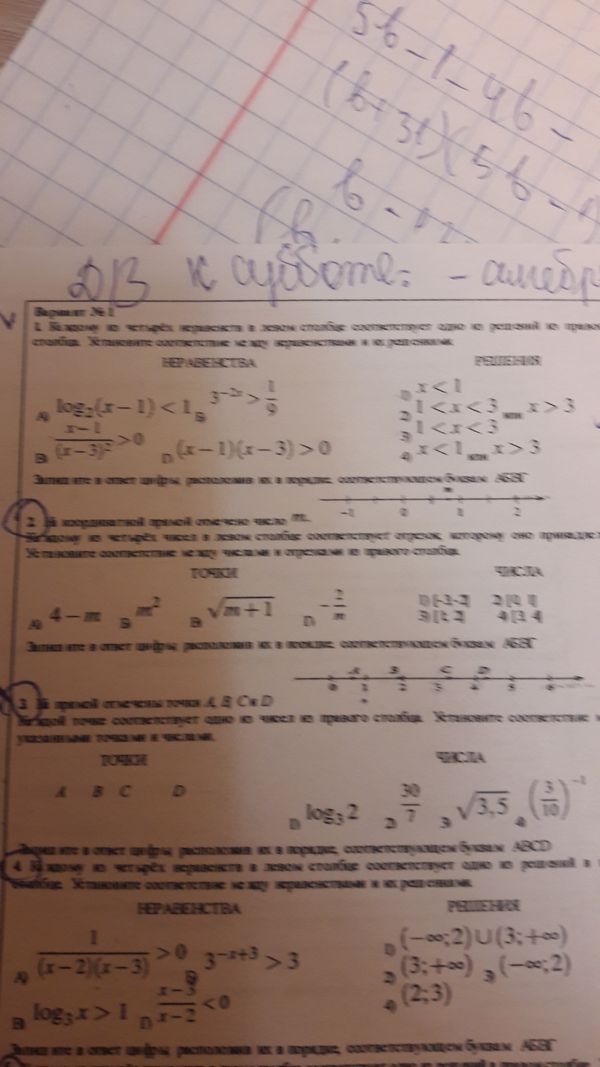 О т в е т. 1) x < 1