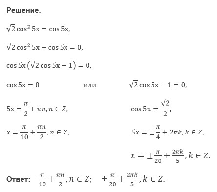5x=(Pi/2)+Pik, k ∈Z или 5х= ± (Pi/4)+2Pin, n ∈ Z ⇒