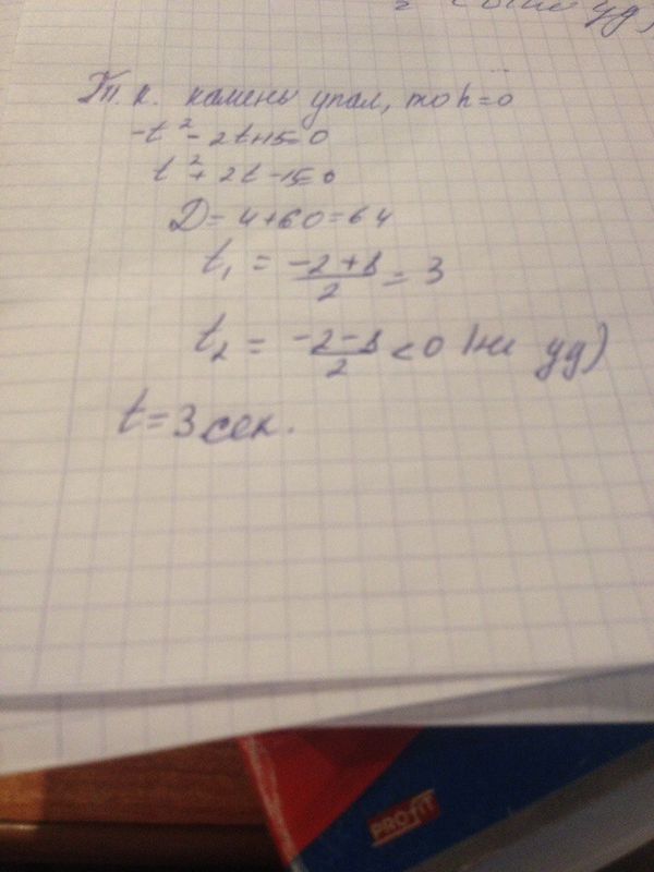 если решать квадратное уравнение 15–2t–t2=0 получим 2 корня, -5 и 3, отрицательный отбрасываем, остается верный ответ 3 сек *************** уважаю