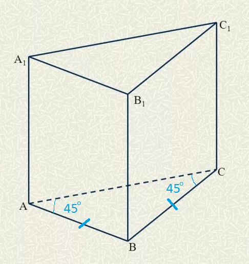 45 градусов. Линейный угол двугранного угла - угол САВ. АА_(1) ⊥ пл. АСВ Значит АС ⊥ АА1 и ВА ⊥ АА1 Треугольник АВС - прямоугольный равнобедренный, значит его острые углы 45 градусов.