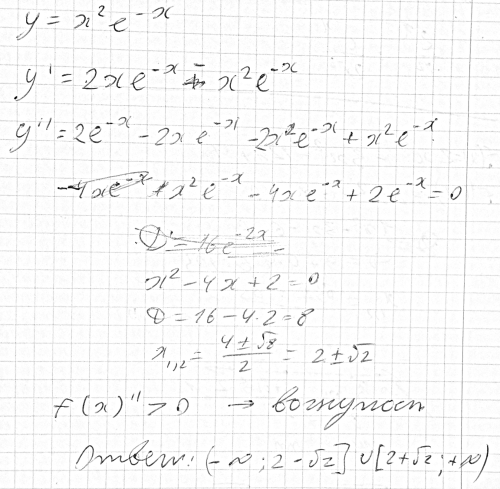 Найти промежутки вогнутости функции y=x^2e^(-x)