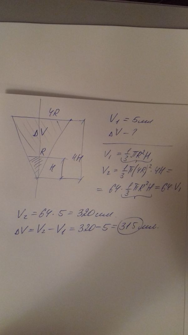 v(налитой жидкости)= )=(1/3)*Pi*r^2*h=