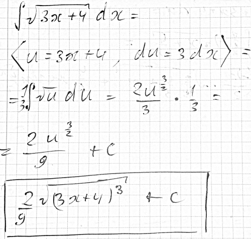 Вычислить интеграл ∫sqrt(3x+4)dx