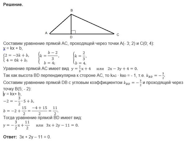 О т в е т. 3x+2y - 11 =0 - уравнение прямой BD.