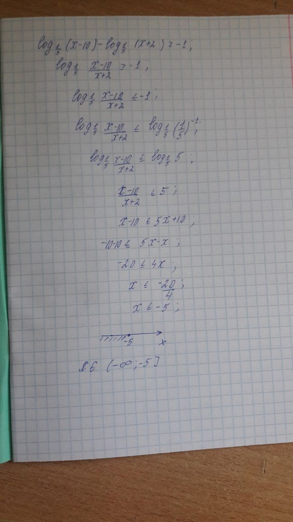 log(1/5)(x-10)-log(1/5)(x+2) больше или...