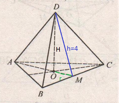 Сторона основания правильной треугольной пирамиды равна 4 корень 3 Апофема 4 Найдите объем пирамиды