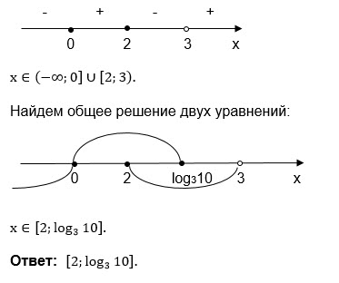 Решите систему [m]\left\{ \begin{matrix} 3^x + 10 \cdot 3^{-x} \leq 11\\ \frac{2x^2 - 5x}{x-3} \leq x \end{matrix} \right.[/m]