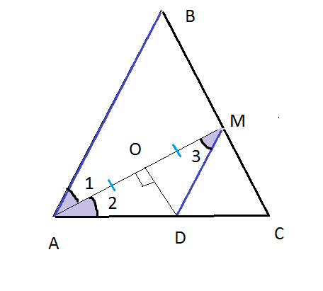 Точка O - середина биссектрисы AM треугольника ABC. На стороне AC отмечена точка D такая, что DO перпендекулярна AM. Докажите, что DM параллельно AB