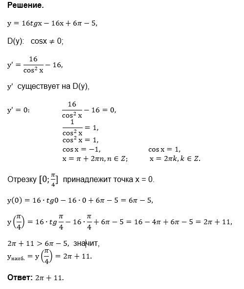y(Pi/4)=16*tg(Pi/4)-16*(Pi/4)+6Pi-5=