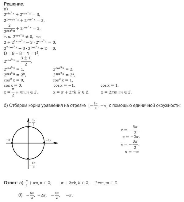 2^sinх(в квадрате) + 2^cosx(в квадрате) = 3. Промежуток от -5п/2;-п включительно