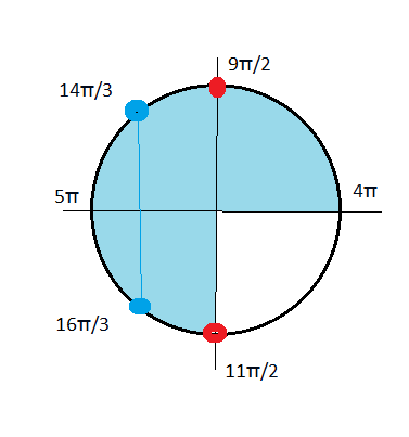 б)(9Pi/2);(2Pi/3)+4Pi=14Pi/3; (-2Pi/3)+6Pi=16Pi/3; 11Pi/2 ∈ [4Pi;11Pi/2]