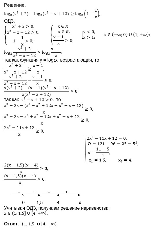 log_(3)(x^2+2)/(x^2-x+12) больше или равно log_(3) (1-(1/х))