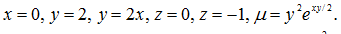 =∫ ^(0)_(-1)dz ∫^(2) _(0)y^2*(2/y)*(e^(xy/2)|^(y/2)_(0)dy=