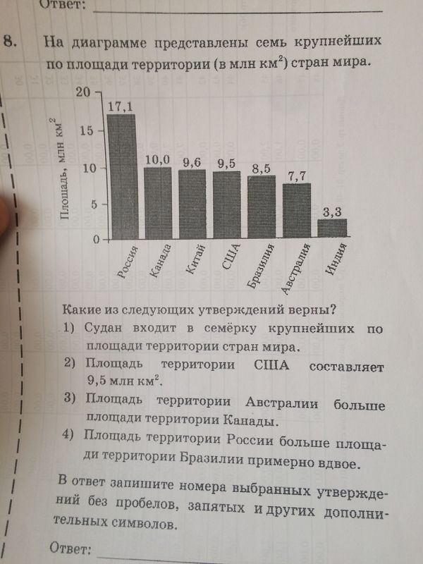 4) Площадь территории России больше площади территории Бразилии примерно вдвое.