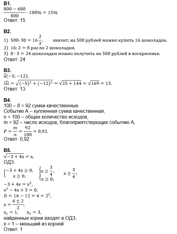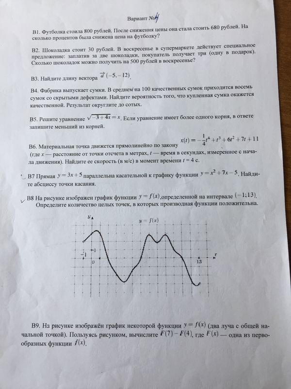 В1. Футболка стоила 800 рублей. После снижения цены она стала стоить 680 рублей. На сколько процентов была снижена цена на футболку?