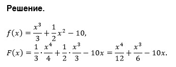Найти первообразную функции f (x)=x^3/3+1/2 x^2-10