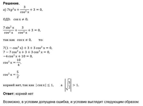 a) 7tg^2x + 3/cos^2x + 3 = 0