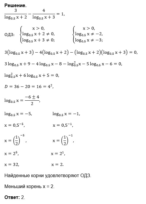 3/(log(0.5)x+2) - 4/(log(0.5)x+3) = 1