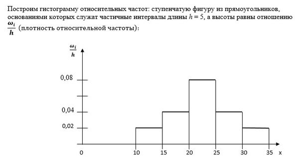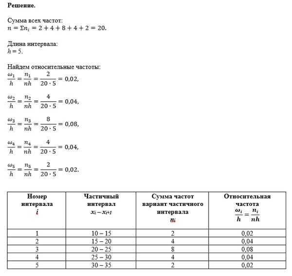449) Построить гистограмму относительных частот по данному распределению выборки: Указание. Найти сначала относительные частоты, соответствующие плотности относительной частоты для каждого интервала.